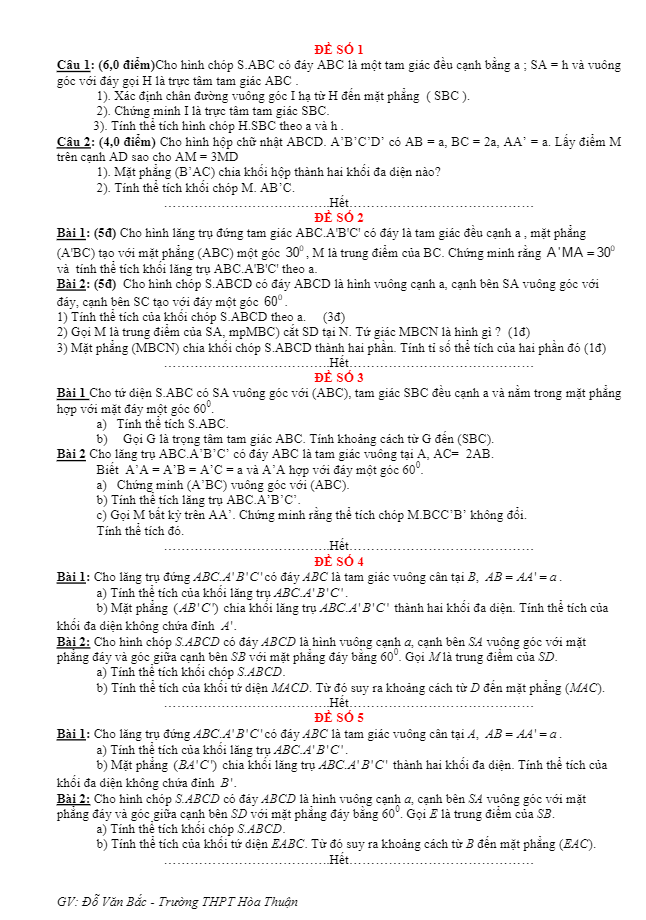 Tổng hợp 11 đề kiểm tra Hình học 12 chương 1 trường THPT Hòa Thuận – Kiên Giang