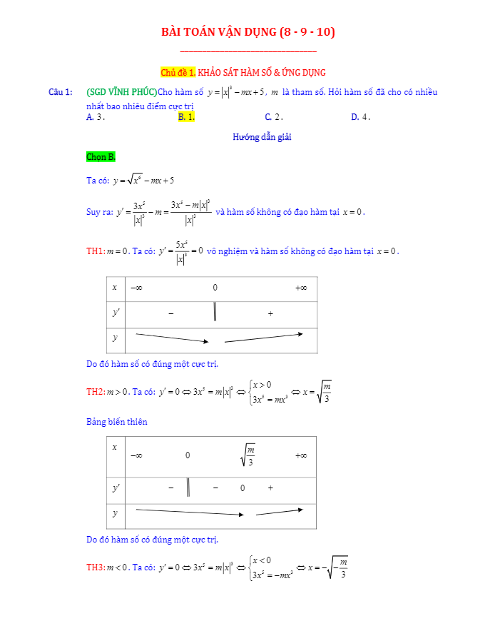 Giải chi tiết các bài toán vận dụng điểm 8 – 9 – 10 trong các đề thi thử môn Toán