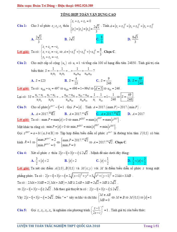 Tổng hợp Toán vận dụng cao có lời giải chi tiết – Đoàn Trí Dũng