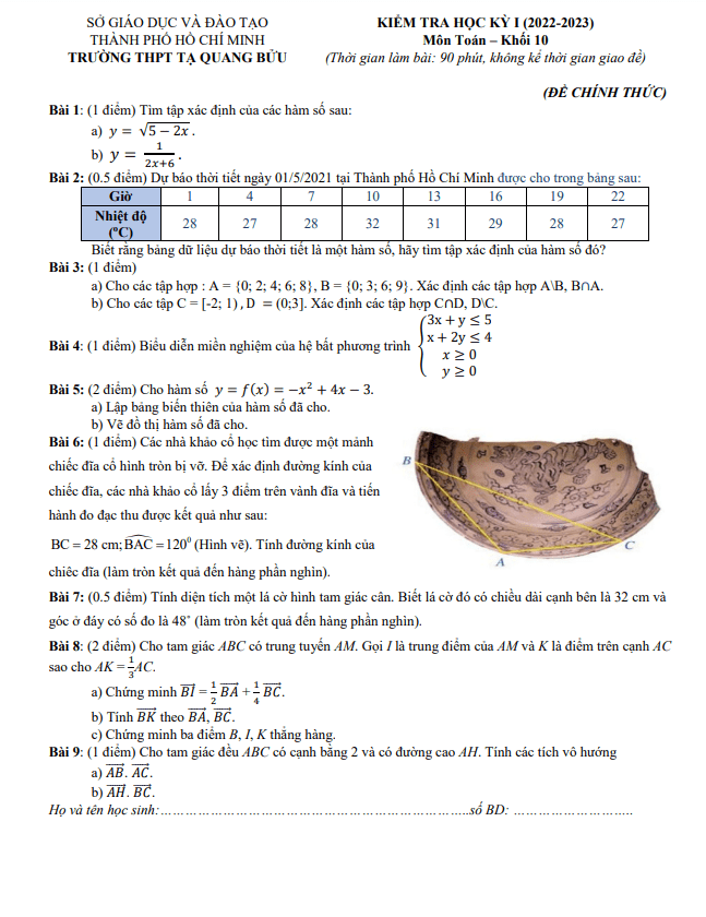 Đề Thi HK1 Toán 10 Đề học kỳ 1 Toán 10 năm 2022 – 2023 trường THPT Phan Ngọc Hiển – Cà Mau 31/12/2022
