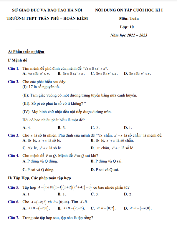 Đề Cương Ôn Tập Toán 10
